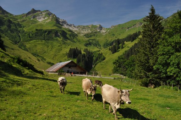 Viele schöne Wanderungen und Bergtouren sind vom Giebelhaus aus möglich. Im Sommer kann man bei Gehzeiten von ½ bis 1 Stunde mehrere bewirtschaftete Alpen erreichen, wo einem eine deftige Brotzeit in beeindruckender Umgebung serviert wird.