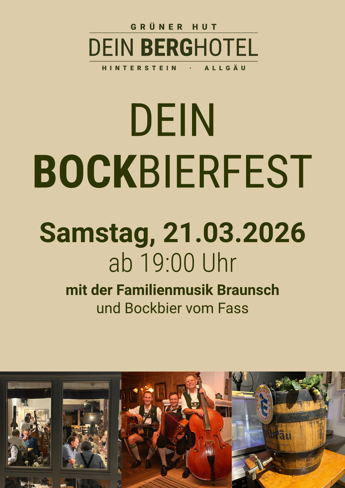 Gemütlicher Abend mit der Familienmusik Braunsch und Bockbier vom Fass.